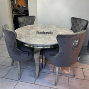 Elevate your dining experience with this luxurious 1.3 Meter Grey Marble Dining Table, paired seamlessly with four stylish Mayfair Chairs. This stunning set is designed to enhance both modern elegance and everyday comfort.