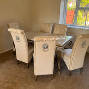 Set includes: 1 x 150cm Cream Louis dining table & 6 x Emma Cream upholstered chairs